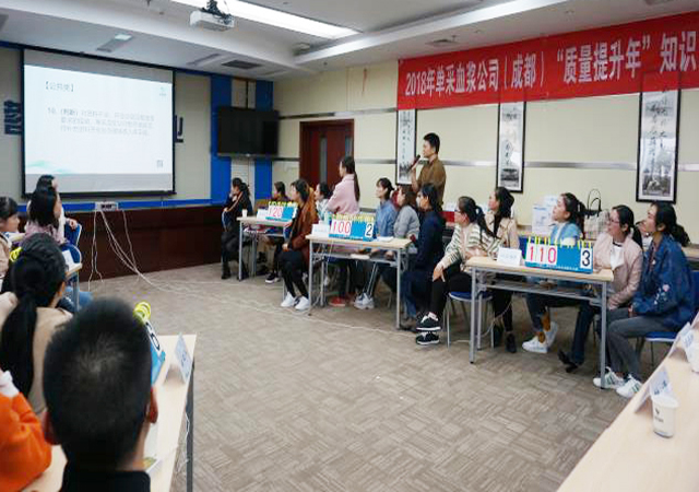 2018年是国药集团的合规管理年,也是国药中生的质量提升年,为了检验各单采血浆公司开展质量提升活动的成效,进一步提升各公司对相关法律法规和业务技能的掌握水平,血源管理中心成都片区于10月26日组织开展了“质量提升年”主题知识竞赛活动。