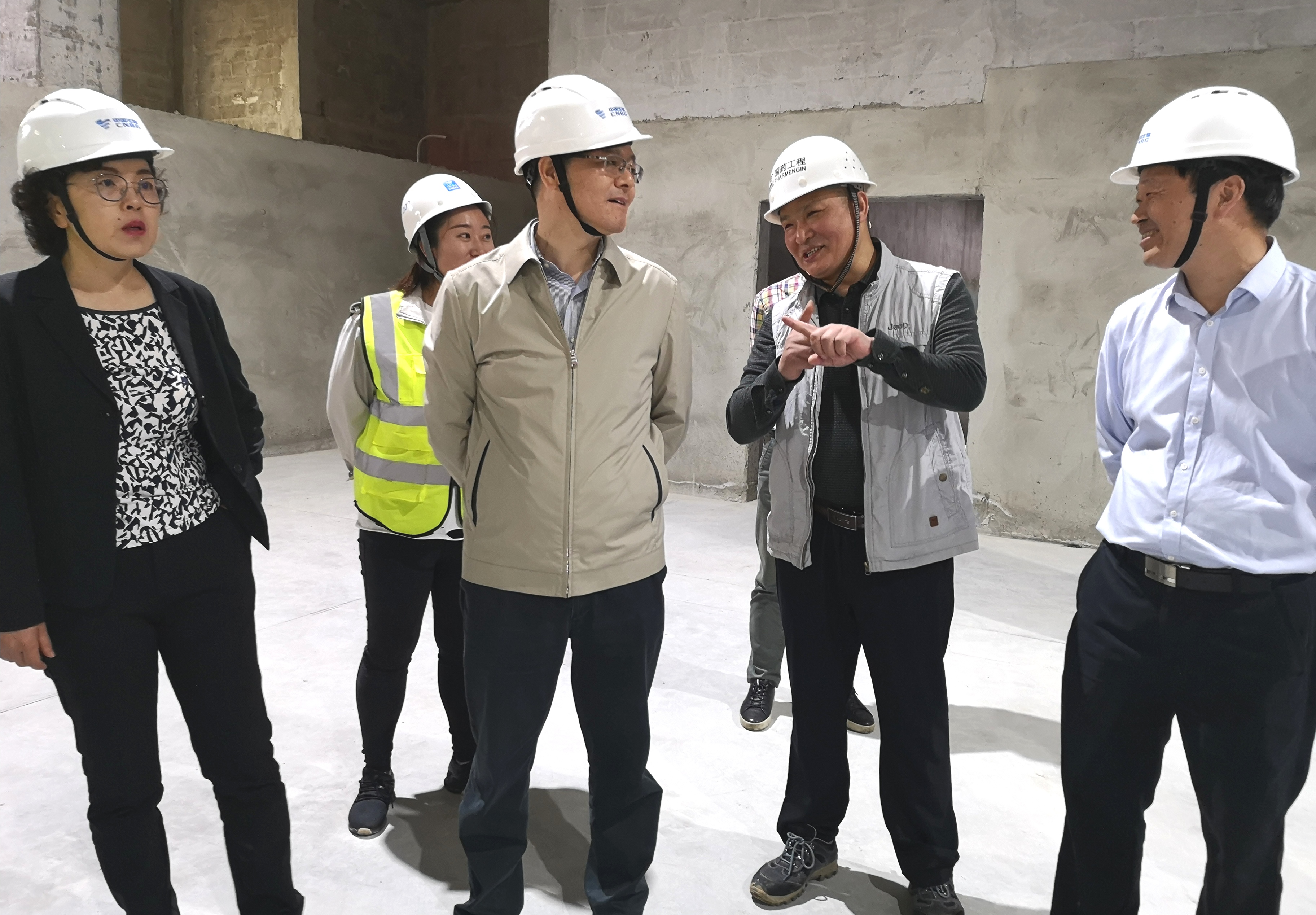 吴永林总裁首先到血制车间和质检楼施工现场进行了实地勘察,详细了解工程建设进度、施工质量以及投资控制等情况。随后听取了项目EPC总承包单位国药工程现场负责人的工作汇报。