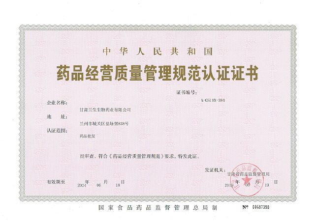 近日,兰州兰生血液制品有限公司下属甘肃兰生生物药业有限公司(以下简称“甘生公司”)获得甘肃省药品监督管理局颁发的GSP证书。6月1日-2日,甘肃省药品监督管理局GSP认证专家组一行对甘生公司进行了现场检查,专家组高度评价了公司GSP执行情况,对公司组织机构、质量文件、硬件管理、人员培训等情况给予了充分肯定,顺利通过GSP换证现场检查。