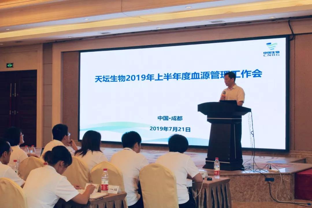 7月21日,天坛生物2019年上半年血源管理工作会议在成都召开。总经理、党委书记付道兴,副总经理何彦林、杜晓,兰州血制副总经理(主持工作)杨福军、武汉血制财务总监冯英、天坛生物血源管理中心及有关部门负责人、51家浆站高管和党支部书记共计90余人参加了本次会议。会议由党委副书记、纪委书记、副总经理周东波主持。