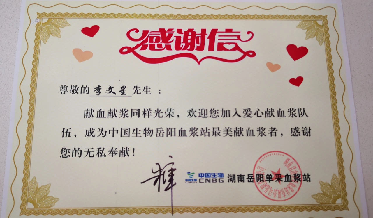 6月12日是中国生物岳阳血浆站获得《单采血浆许可证》开业的日子。在这个特殊的日子,在岳阳血浆站新建成的漂亮大厅里,朱京津遇见了岳阳血浆站开业的首位献血浆志愿者。他代表中国生物向其无私奉献表示感谢,赞赏他们用实际行动践行了献血献浆同样光荣。