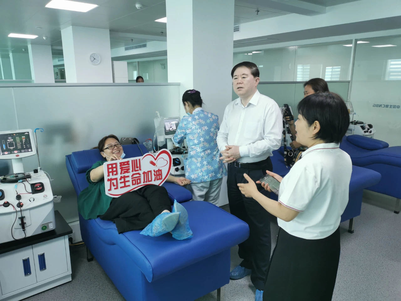 6月12日,在第17个“世界献血者日”来临之际,中国生物党委书记、副总裁朱京津带队来到天坛生物所属湖北监利血浆站、湖南岳阳血浆站,看望慰问工作人员和献血浆志愿者。