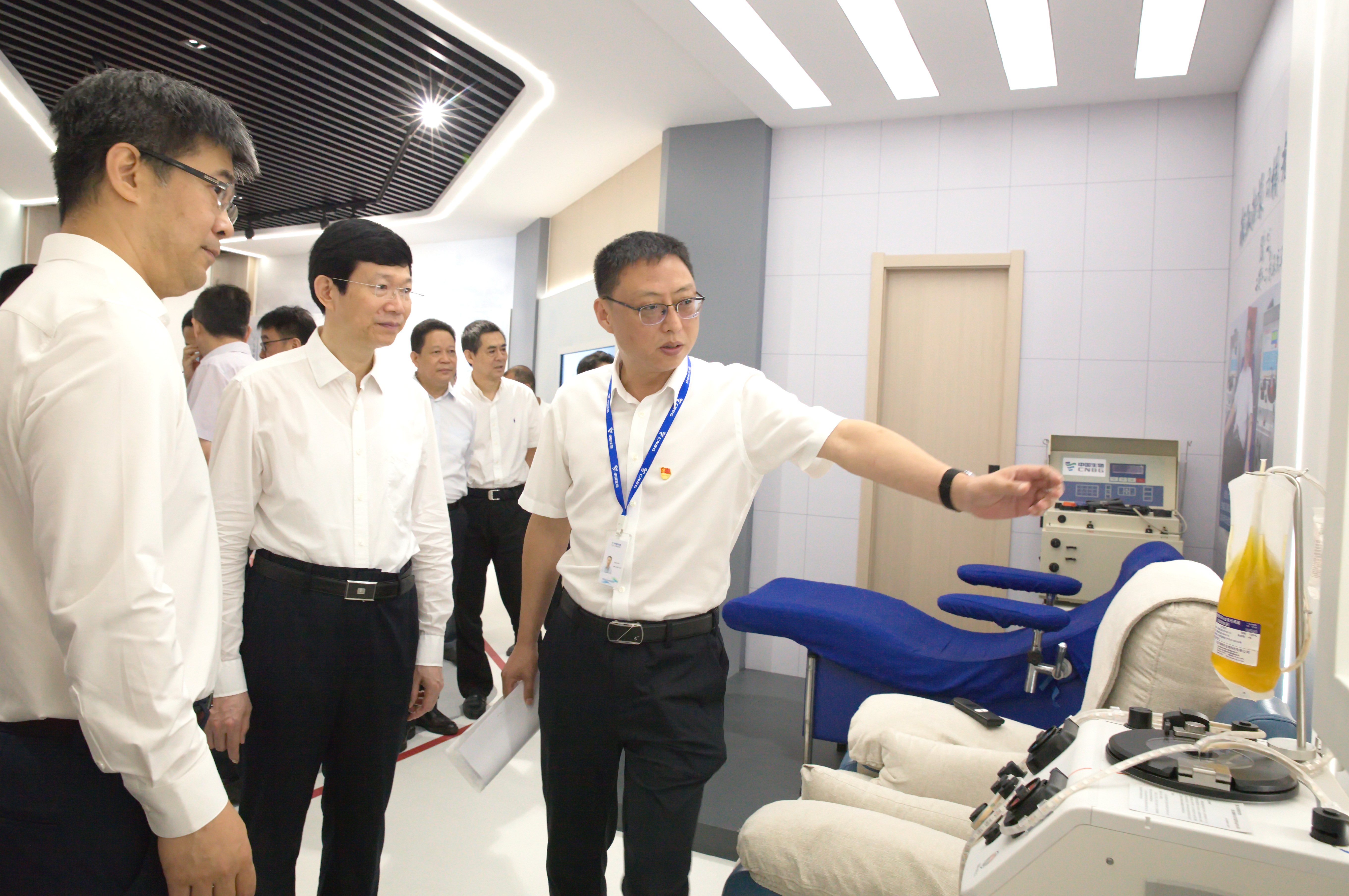 李利一行首先参观了中国生物血液制品博物馆,听取了有关血液制品发展史、中国生物血液制品板块发展历程、献血浆科普知识以及血液制品生产流程等方面的讲解,详细了解了人脸识别系统、智能采浆机等信息化自动化在浆站质量管理中的应用。随后,李利深入到成都蓉生新建成的血液制品生产车间,现场察看了血液制品生产信息化自动化工作情况。李利对天坛生物以及成都蓉生狠抓浆站规范化管理、主动强化血液制品质量管控标准、推动血浆采集信息化和血液制品智能制造水平持续提升方面给予了充分肯定和高度评价。