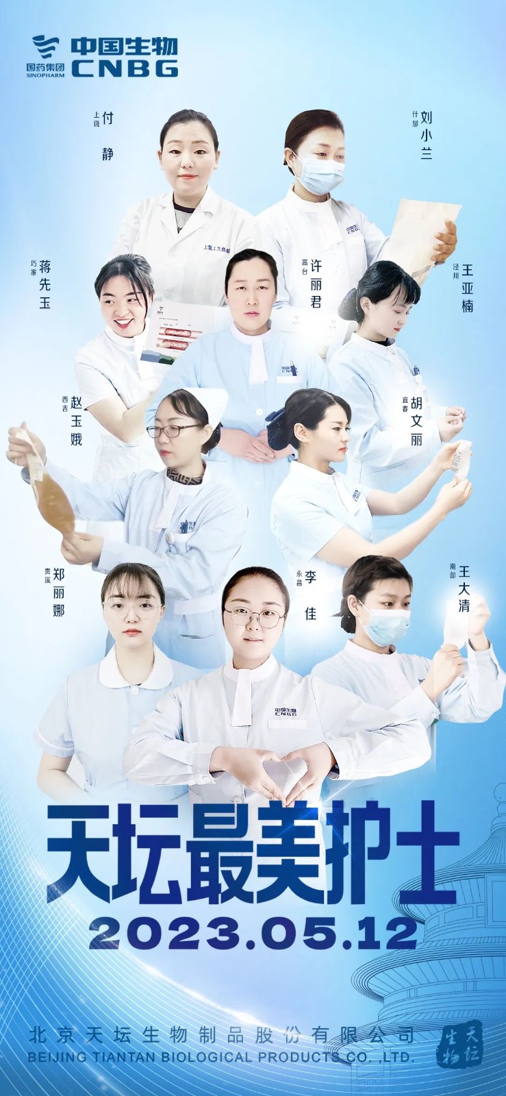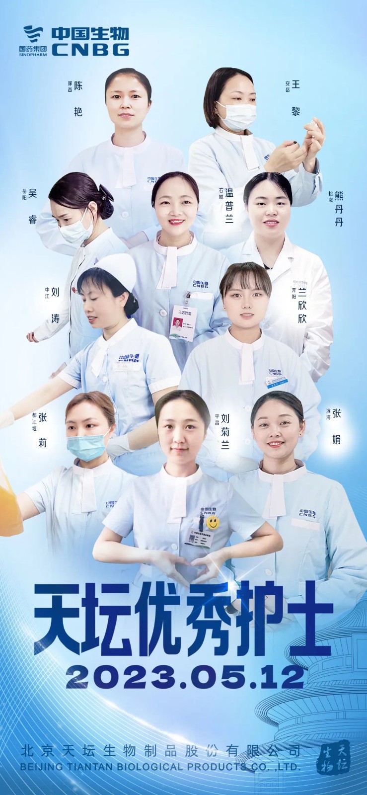 本次评选综合护士业务素养、抗疫经历等多方面因素,经浆站初选推荐、业务知识大比武、演讲大展示、公众号投票等多个环节,最终十名天坛最美护士、十名天坛优秀护士脱颖而出。
