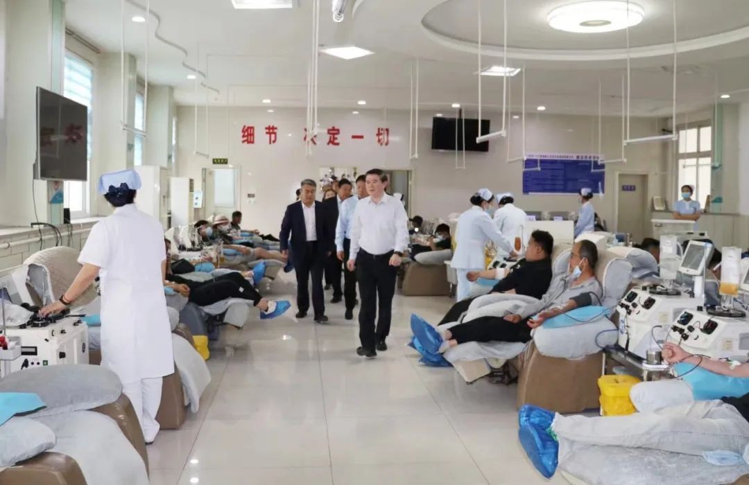 朱京津一行实地调研了浆站的设施设备、工作流程、质量管理情况,了解生产经营状况,并亲切慰问现场献浆员和浆站员工。朱京津嘱咐浆站员工要服务好献浆员,让献浆员在浆站有宾至如归的感觉。